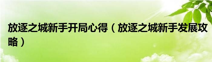 1、放逐之城新手开局心得_放逐之城新手发展攻略