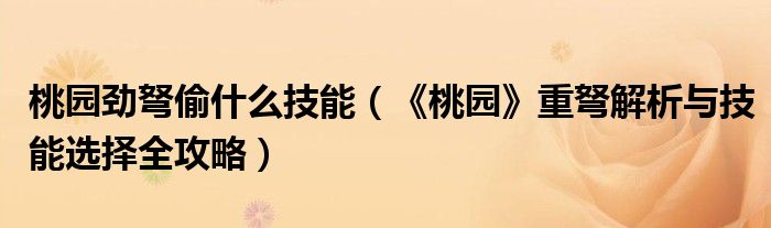 桃园劲弩偷什么技能(《桃园》重弩解析与技能选择全攻略)