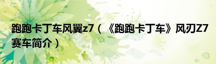 1、【《跑跑卡丁车》风刃Z7赛车简介】