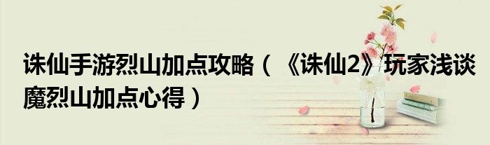 诛仙手游烈山加点攻略(《诛仙2》玩家浅谈魔烈山加点心得)
