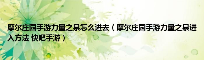 导读 大家好,太太来为大家解答以上问题。摩尔庄园手游力量之泉怎么进去,摩尔庄园手游力量之泉进入方法 快吧手游很多人还不知道,现在让我们一