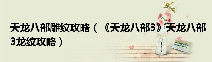 天龙八部雕纹攻略(《天龙八部3》天龙八部3龙纹攻略)