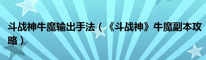 导读 大家好,太太来为大家解答以上问题。斗战神牛魔输出手法,《斗战神》牛魔副本攻略很多人还不知道,现在让我们一起来看看吧!1、本文为玩家