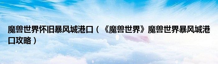 魔兽世界怀旧暴风城港口(《魔兽世界》魔兽世界暴风城港口攻略)