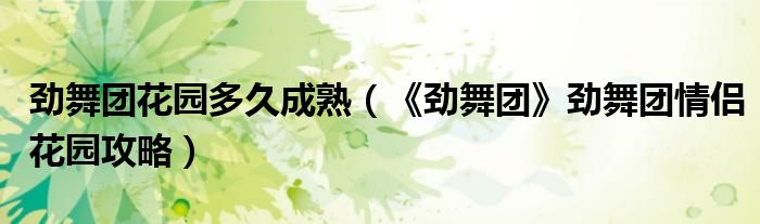 大家好,太太来为大家解答以上问题。劲舞团花园多久成熟,《劲舞团》劲舞团情侣花园攻略很多人还不知道,现在让我们一起来看看吧!