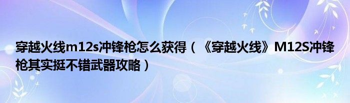 穿越火线m12s冲锋枪怎么获得(《穿越火线》M12S冲锋枪其实挺不错武器攻略)