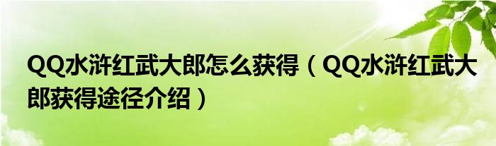 QQ水浒红武大郎怎么获得(QQ水浒红武大郎获得途径介绍)