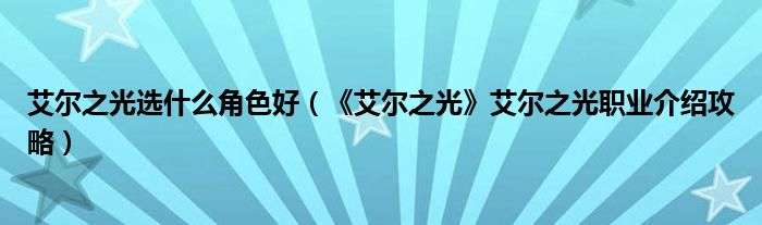 大家好,太太来为大家解答以上问题。艾尔之光选什么角色好,《艾尔之光》艾尔之光职业介绍攻略很多人还不知道,现在让我们一起来看看吧!
