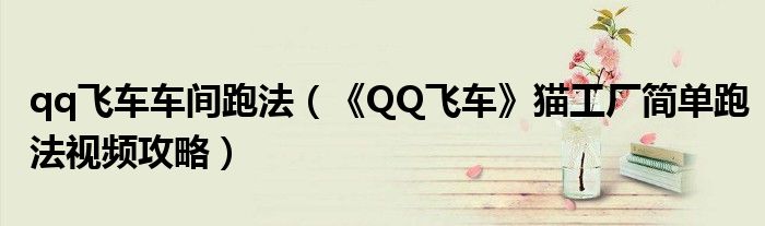 导读 大家好,太太来为大家解答以上问题。qq飞车车间跑法,《QQ飞车》猫工厂简单跑法视频攻略很多人还不知道,现在让我们一起来看看吧!1、“猫