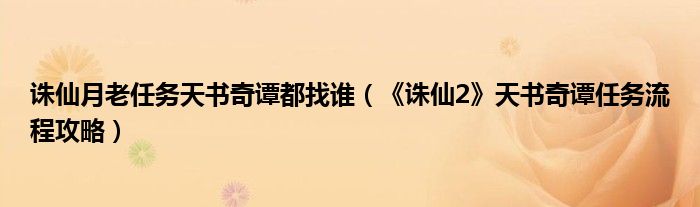 大家好,太太来为大家解答以上问题。诛仙月老任务天书奇谭都找谁,《诛仙2》天书奇谭任务流程攻略很多人还不知道,现在让我们一起来看看吧!