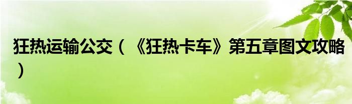 狂热运输公交(《狂热卡车》第五章图文攻略)