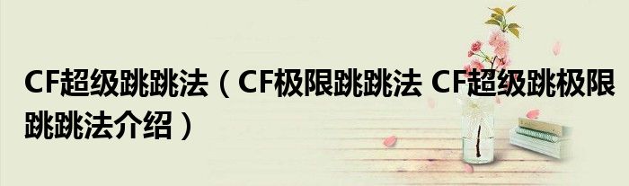 CF超级跳跳法(CF极限跳跳法 CF超级跳极限跳跳法介绍)