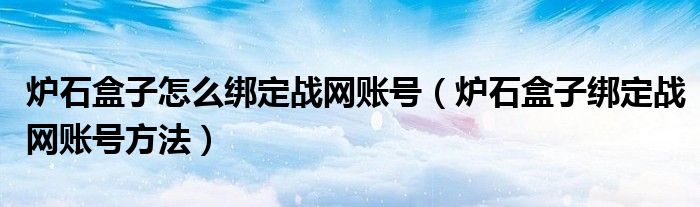 炉石盒子怎么绑定战网账号(炉石盒子绑定战网账号方法)