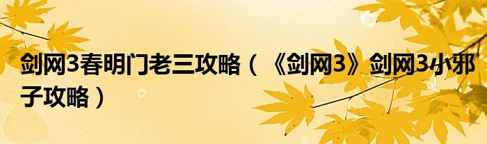 导读 大家好,太太来为大家解答以上问题。剑网3春明门老三攻略,《剑网3》剑网3小邪子攻略很多人还不知道,现在让我们一起来看看吧!1、跪求剑网