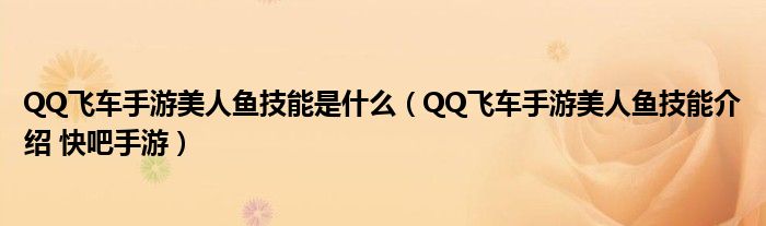 导读 大家好,太太来为大家解答以上问题。QQ飞车手游美人鱼技能是什么,QQ飞车手游美人鱼技能介绍 快吧手游很多人还不知道,现在让我们一起来看