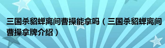 三国杀貂蝉离间曹操能拿吗(三国杀貂蝉离间曹操拿牌介绍)