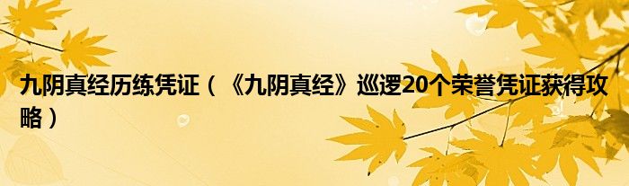 九阴真经历练凭证(《九阴真经》巡逻20个荣誉凭证获得攻略)
