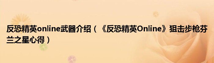 大家好,太太来为大家解答以上问题。反恐精英online武器介绍,《反恐精英Online》狙击步枪芬兰之星心得很多人还不知道,现在让我们一起来看看吧!