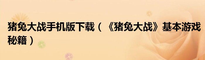 猪兔大战手机版下载(《猪兔大战》基本游戏秘籍)