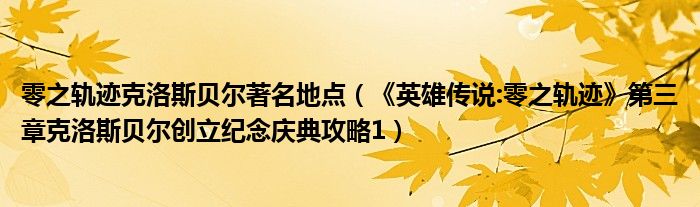 导读 大家好,太太来为大家解答以上问题。零之轨迹克洛斯贝尔著名地点,《英雄传说:零之轨迹》第三章克洛斯贝尔创立纪念庆典攻略1很多人还不知道