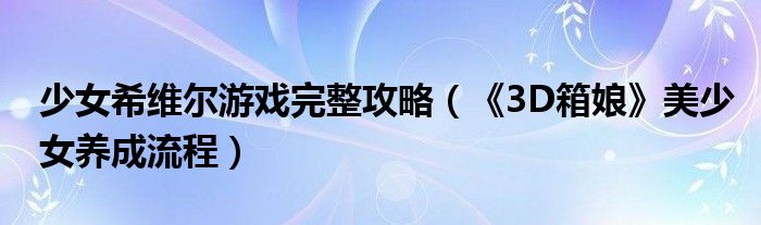 少女希维尔游戏完整攻略(《3D箱娘》美少女养成流程)