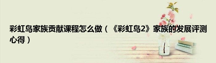 彩虹岛家族贡献课程怎么做(《彩虹岛2》家族的发展评测心得)