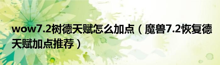 导读 大家好,太太来为大家解答以上问题。wow7 2树德天赋怎么加点,魔兽7 2恢复德天赋加点推荐很多人还不知道,现在让我们一起来看看吧!1、随着