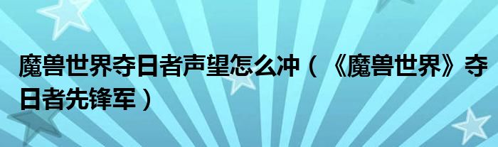 魔兽世界夺日者声望怎么冲(《魔兽世界》夺日者先锋军)