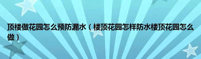 顶楼做花园怎么预防漏水(楼顶花园怎样防水楼顶花园怎么做)