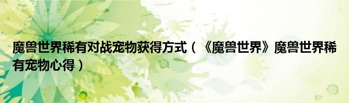 魔兽世界稀有对战宠物获得方式(《魔兽世界》魔兽世界稀有宠物心得)
