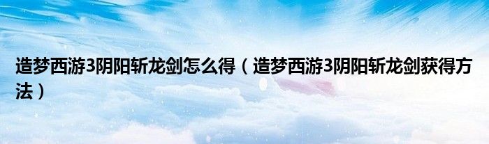 造梦西游3阴阳斩龙剑怎么得(造梦西游3阴阳斩龙剑获得方法)