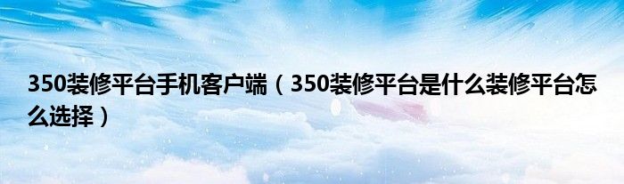 350装修平台手机客户端(350装修平台是什么装修平台怎么选择)