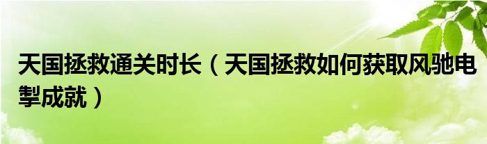 天国拯救通关时长(天国拯救如何获取风驰电掣成就)