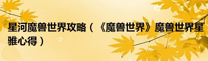 星河魔兽世界攻略(《魔兽世界》魔兽世界星骓心得)