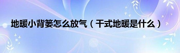 大家好,今天乐乐来为大家解答以上问题。地暖小背篓怎么放气,干式地暖是什么很多人还不知道,现在让我们一起来看看吧!