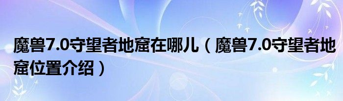 大家好,太太来为大家解答以上问题。魔兽7.0守望者地窟在哪儿,魔兽7.0守望者地窟位置介绍很多人还不知道,现在让我们一起来看看吧!