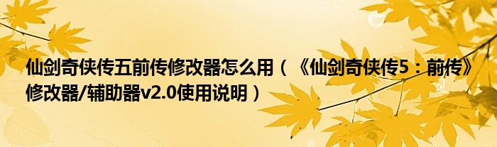 仙剑奇侠传五前传修改器怎么用(《仙剑奇侠传5:前传》修改器/辅助器v2.0使用说明)