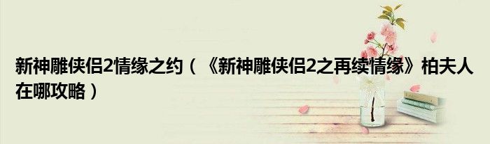 导读 大家好,太太来为大家解答以上问题。新神雕侠侣2情缘之约,《新神雕侠侣2之再续情缘》柏夫人在哪攻略很多人还不知道,现在让我们一起来看看