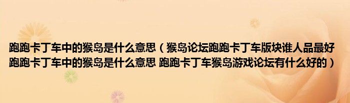 跑跑卡丁车中的猴岛是什么意思(猴岛论坛跑跑卡丁车版块谁人品最好 跑跑卡丁车中的猴岛是什么意思 跑跑卡丁车猴岛游戏论坛有什么好的)