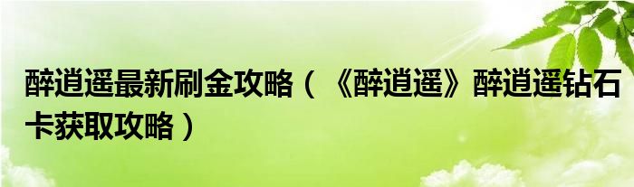 醉逍遥最新刷金攻略(《醉逍遥》醉逍遥钻石卡获取攻略)