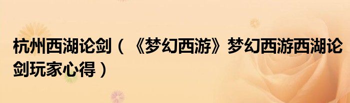 杭州西湖论剑(《梦幻西游》梦幻西游西湖论剑玩家心得)