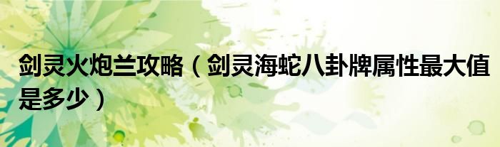 大家好,太太来为大家解答以上问题。剑灵火炮兰攻略,剑灵海蛇八卦牌属性最大值是多少很多人还不知道,现在让我们一起来看看吧!