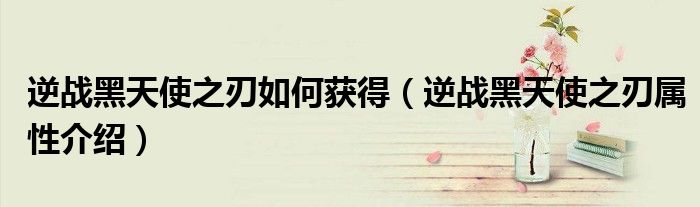 导读 大家好,太太来为大家解答以上问题。逆战黑天使之刃如何获得,逆战黑天使之刃属性介绍很多人还不知道,现在让我们一起来看看吧!1、黑天