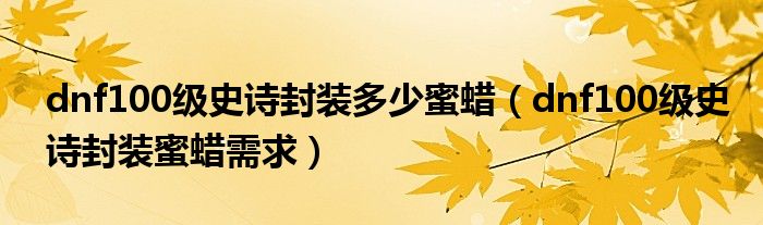 dnf100级史诗封装多少蜜蜡(dnf100级史诗封装蜜蜡需求)