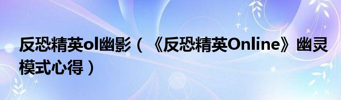 反恐精英ol幽影(《反恐精英Online》幽灵模式心得)