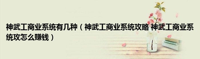 神武工商业系统有几种(神武工商业系统攻略 神武工商业系统攻怎么赚钱)