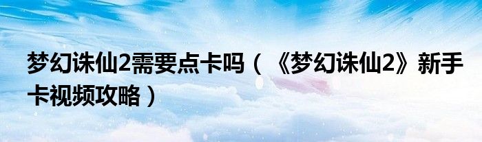梦幻诛仙2需要点卡吗(《梦幻诛仙2》新手卡视频攻略)