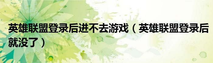 英雄联盟登录后进不去游戏(英雄联盟登录后就没了)