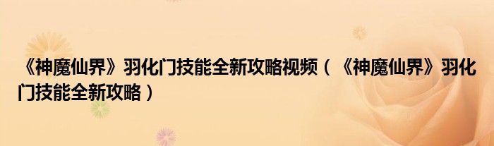 《神魔仙界》羽化门技能全新攻略视频(《神魔仙界》羽化门技能全新攻略)