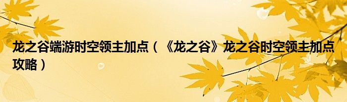 龙之谷端游时空领主加点(《龙之谷》龙之谷时空领主加点攻略)